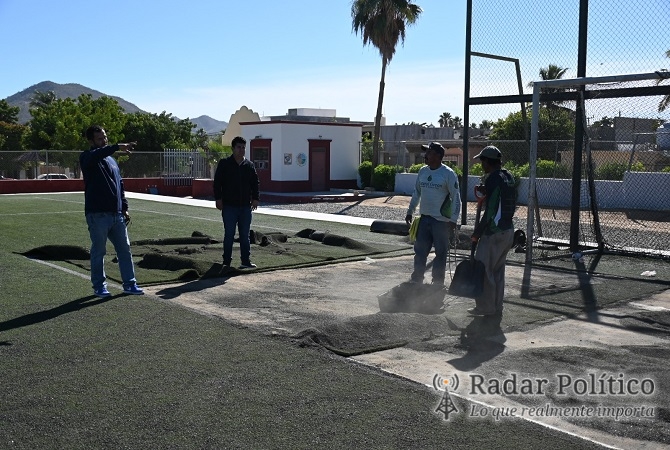 Olachea Arce explicó que las labores incluyen el levantamiento y limpieza de las áreas dañadas en el terreno de juego, posteriormente, se procederá con la colocación de los implementos necesarios y la instalación de nuevo pasto sintético de alta calidad. Este esfuerzo tiene como objetivo mejorar las instalaciones deportivas del municipio, beneficiando a la comunidad y a los deportistas locales.